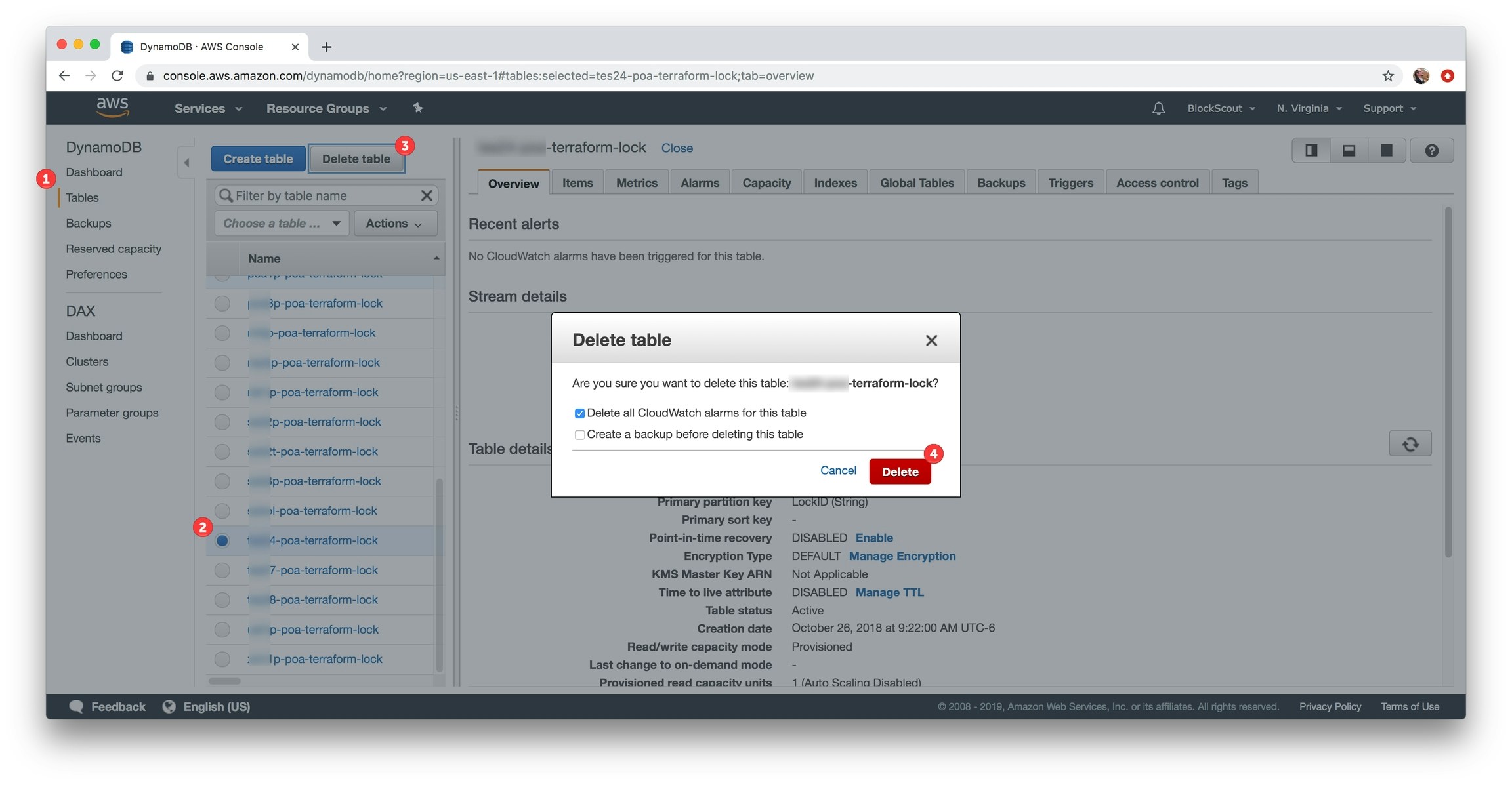 bin/infra destroy. Additionally, bin/infra destroy_setupwill delete the DynamoDB table. More information on destroying infrastructure is available here.However, in circumstances that rely on insufficient AWS account rights, the deployment process may fail. In this case, bin/infra destroy_setup will not work.Additionally, forgetting to clean resources can result in high AWS costs in a short period of time, so it’s best to check that all resources have been removed.- S3